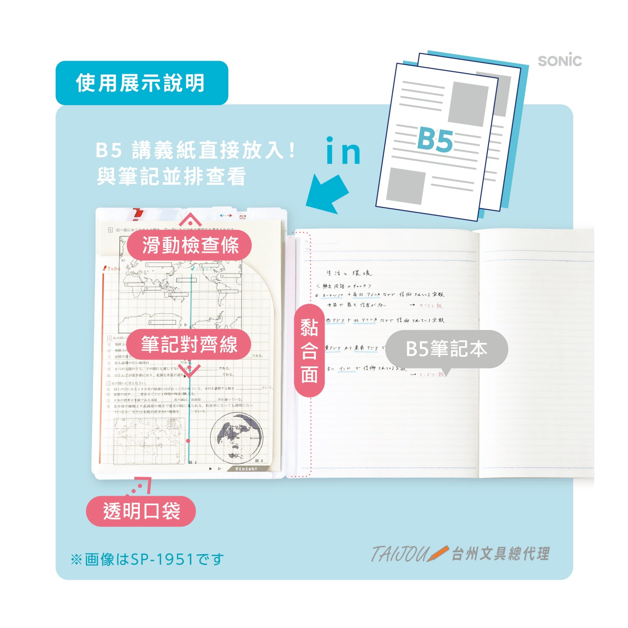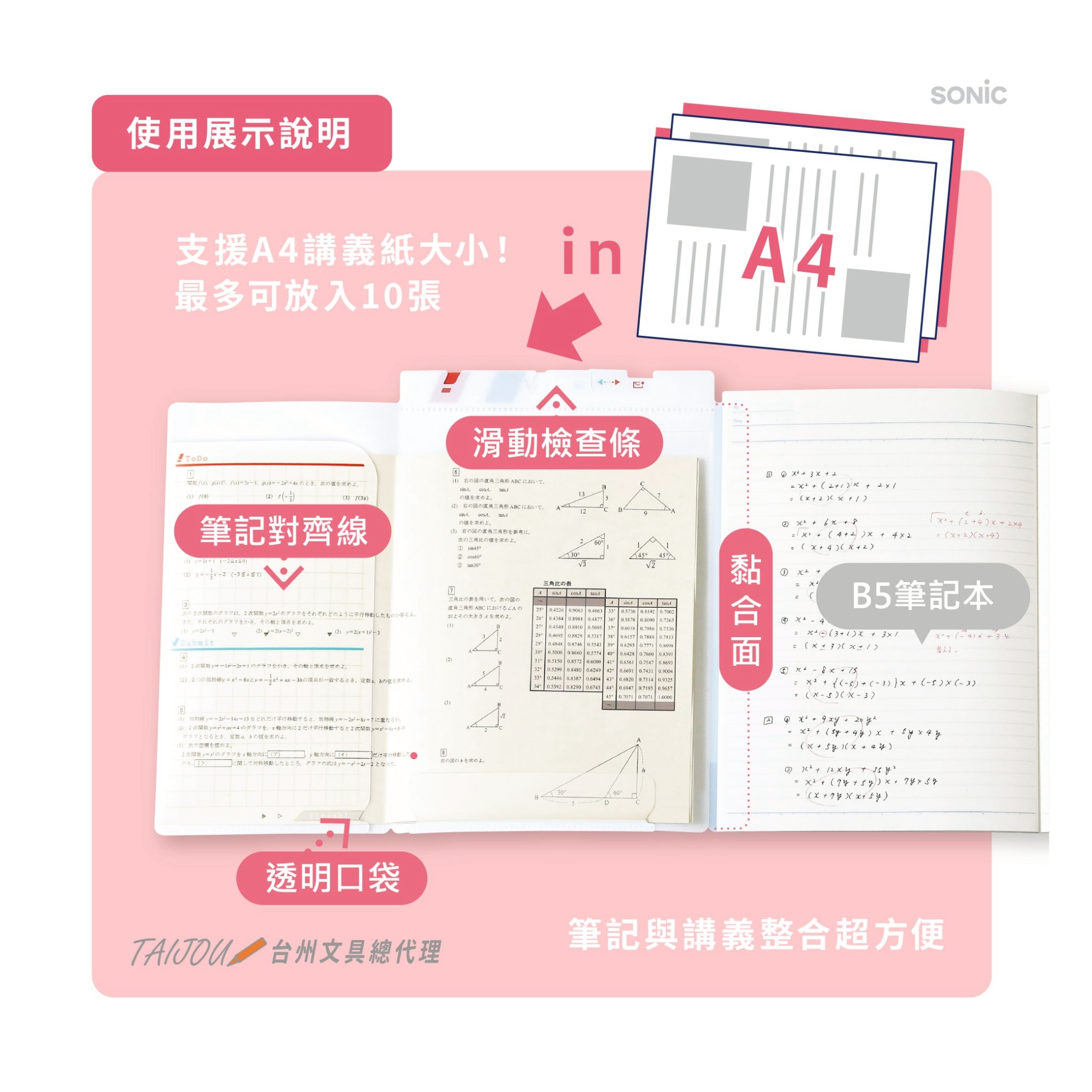 透明口袋穩固收納,大量講義也不易滑出或皺折。
