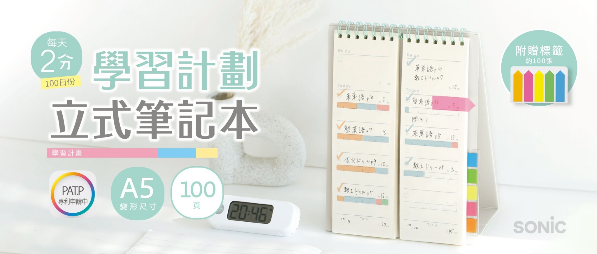 來自日本的 SONIC學習計劃立式筆記本,以「每天2分鐘」為核心設計,