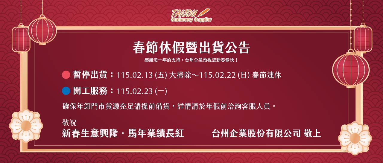 無論您有任何需求或問題,台州文具隨時為您提供專業協助! 我們期待與您合作,為您提供更高效、更專業的服務,幫助您解決各種文具需求。立即聯繫我們,讓台州文具成為您長期可靠的夥伴! |